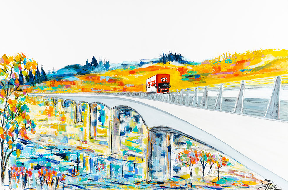 Pour l'entreprise Cayon transport à Chalon, transport à travers la campagne proche du siège sociale, pont de l'Ain.